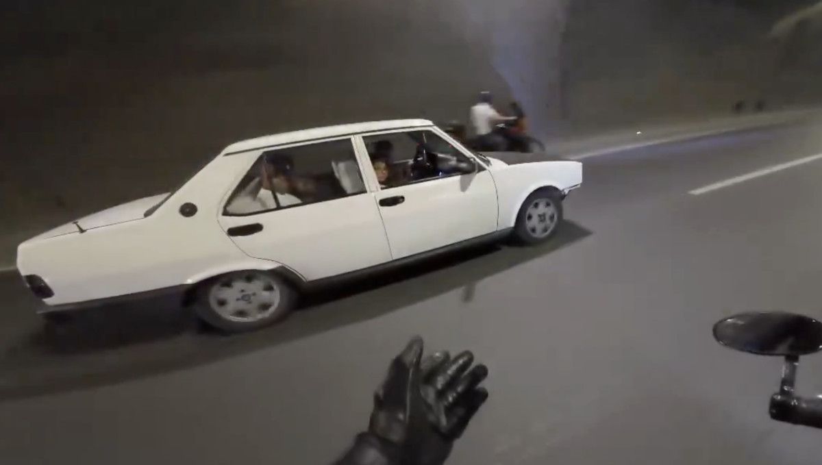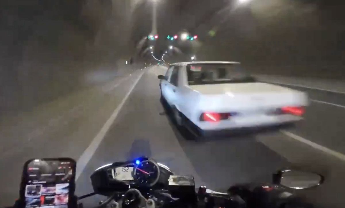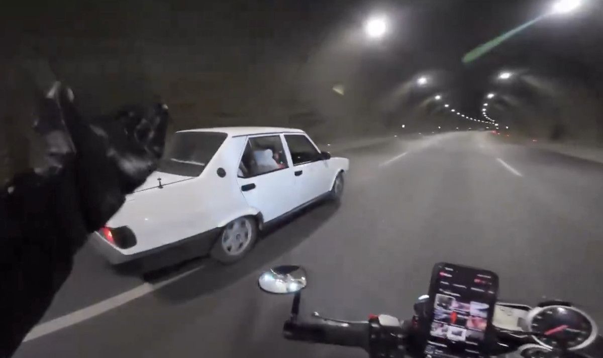 Bir motorcu tünelde 190 km/s hızla ilerlerken karşısına bir anda otomobil çıktı.